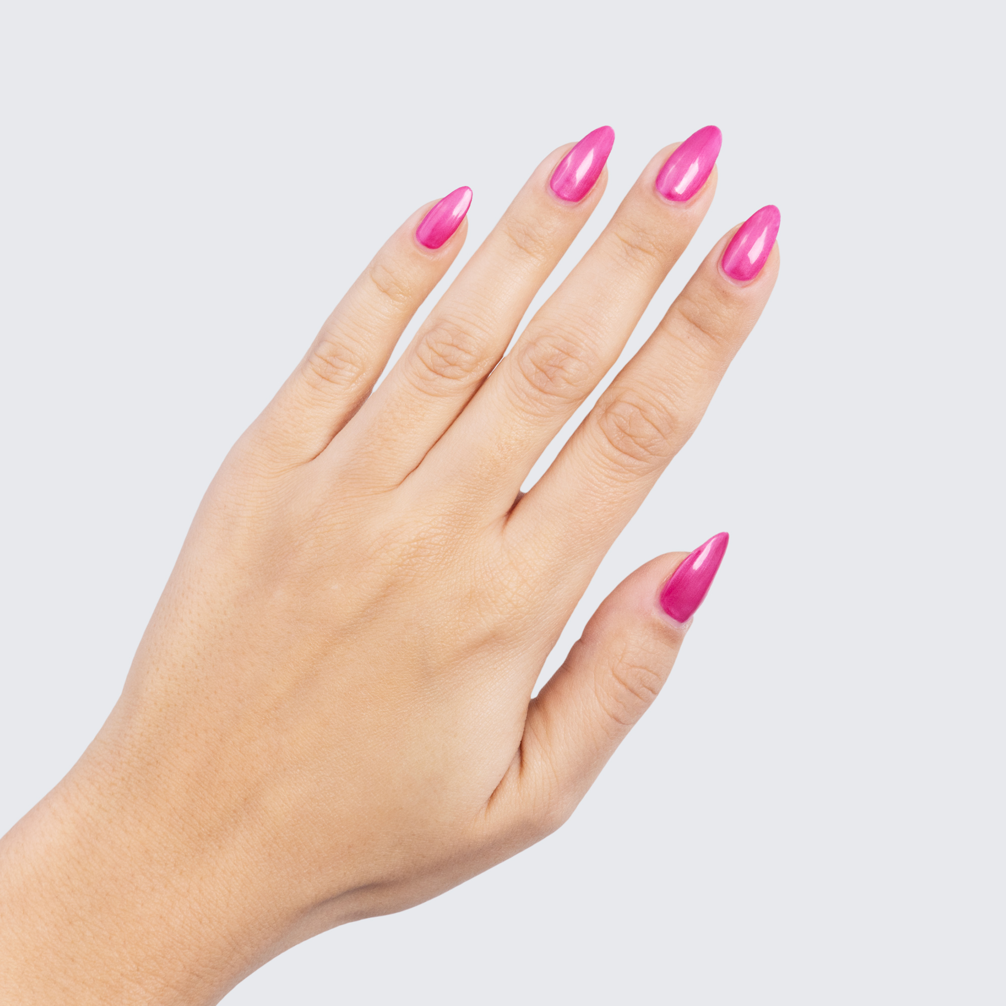 Magenta. Pearl finish. Medium-light. 1 coat sheer, 2+ coats opaque. Warm undertone.